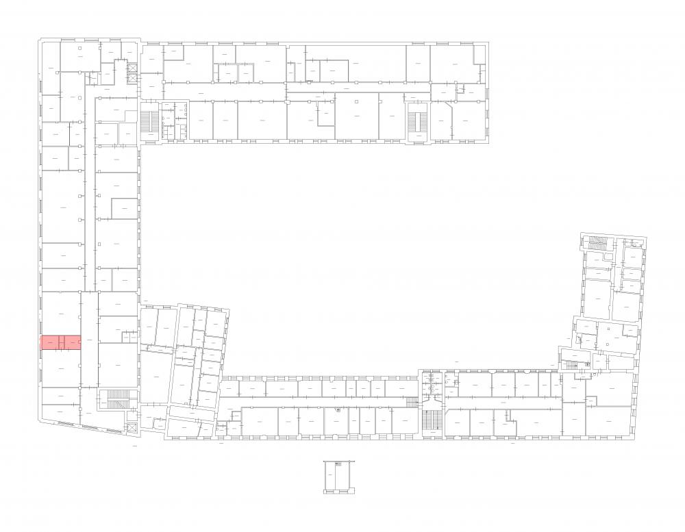 Площадь можно зонировать под зал для тренировок и раздевалку.