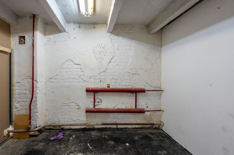 Высота потолка 2.40 м, бетонный пол, окрашенные стены.